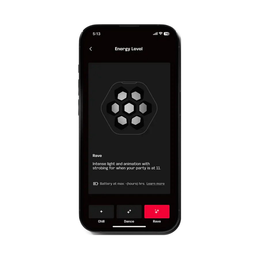 Effects 3x energy modes (Chill, Dance, Rave)